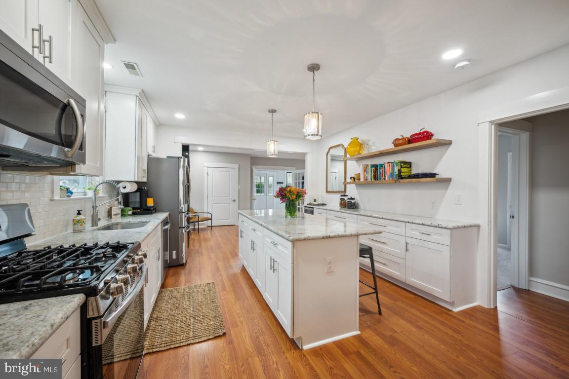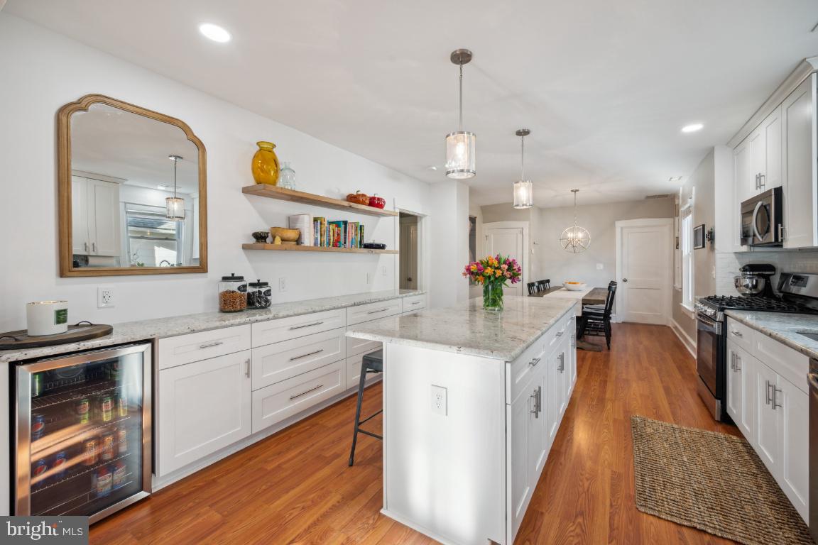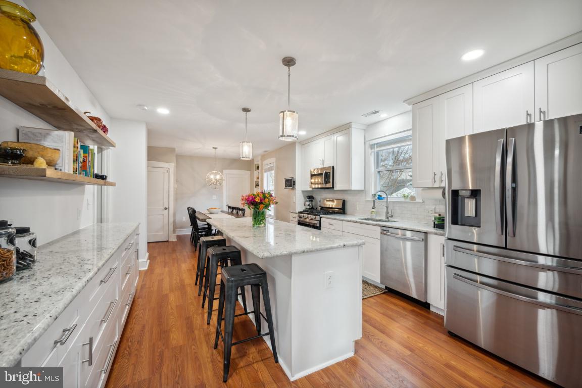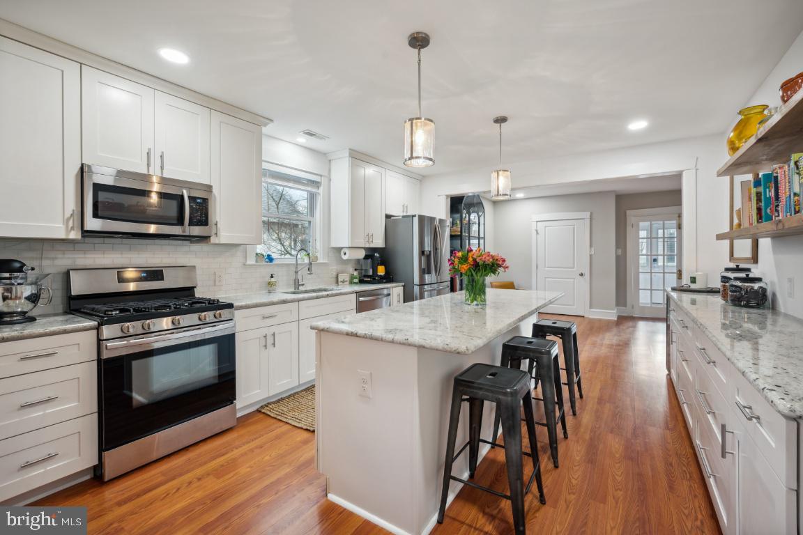 New Year, NEW HOME! Come tour this beautiful updated Bungalow in Westmont just blocks to the hip restaurant, bar scene of downtown Haddon Twp., the Haddon Square to enjoy community events and a short walk to the Westmont Patco station for easy commuting to Philly! Renovated in 2019, the current owners have added a Boho chic style to this charming 1920's Bungalow that is sure to bring you all the Pinterest feels you have been waiting for in your new humble abode. As you enter into your new home onto your enclosed porch, adorned with newer windows filling the space with great natural light, you will feel the warmth even on the coldest of winter days. This space is waiting for you to use all year round, maybe as your home office, play space for your little ones or simply a great reading nook and plant sanctuary as the current owners love to use this space for. Enter into the main living space to find a large family room, flowing right into your gorgeous newer kitchen and dining area perfect for entertaining with friends in the New Year! The spacious kitchen, every cook's dream, offers an abundance of prep space, plenty of kitchen storage with white shaker cabinets abound, granite countertops, stainless steel appliances and a 4 seater kitchen island perfect to gather around as you throw your house warming party in 2024! The dining space, open to the Kitchen, is spacious enough for a large dining table with at least 8 chairs. The current owners added an additional banquet of cabinetry with matching granite countertops, wine fridge and modern shelving to display your best cookbooks or decor that makes you happy! To finish off the first floor, you will find two bedrooms and a full updated bathroom with a large built-in linen pantry. The first floor bedrooms are perfect for a home office, nursery or guest room. Your primary suite is on the second level offering an on-suite bathroom with a stall shower and pedestal sink with built-in shelving along the hall leading to the bathroom perfect for all of your products! On the second level there are a few fun surprise spaces. As you enter the second level you will find a landing offering space for a cozy reading nook and additional furniture like a large dresser. Walk down the hall to your left you will find a full walk-in closet space, a perfect dressing room, with custom shelving and a bench for trying on your new shoes across from your primary bathroom. And there is an additional nook the current owners use as their Peloton station or it could make an ideal space for a home office with privacy as you jump on your remote meetings! The primary bedroom has space for a king size bed and offers two additional closets just in case your partner's clothes are not welcome in your new dressing room down the hall! Additional storage can be found in the unfinished basement along with the laundry area. As you enter into the fully fenced backyard, you will be greeted with a patio, fire pit area, custom shed for your bikes and lawn maintenance tools. The current owners added gorgeous river rocks and a full privacy fence that you will surely enjoy this fall. Once the warmer weather comes, you will love your new outdoor entertainment giving you a little slice of suburban outdoor private living, but still in the heart of everything there is to love about downtown Haddon Twp. Sure to please, updated and ready for you to unpack your bags to start 2024 off right!